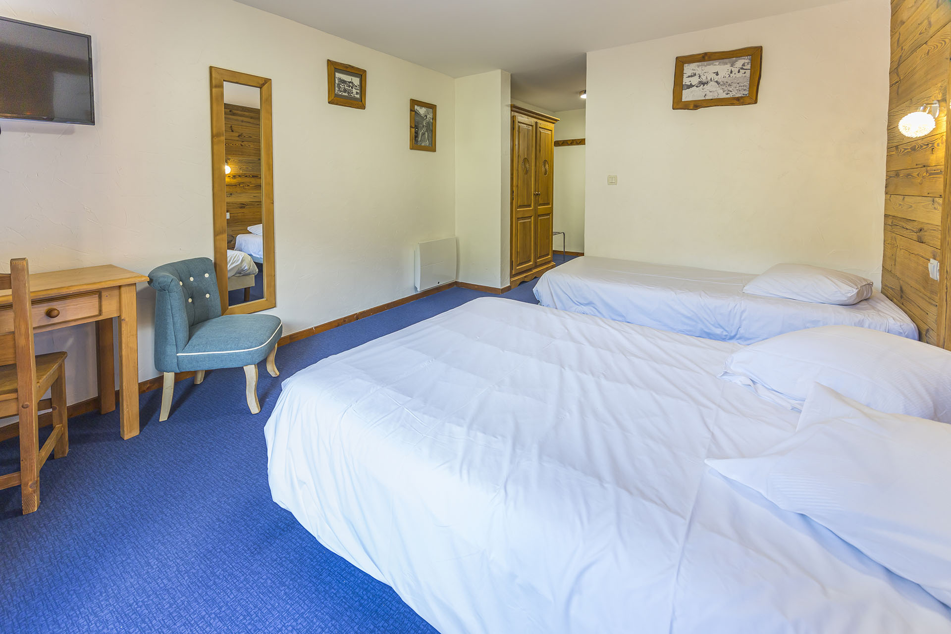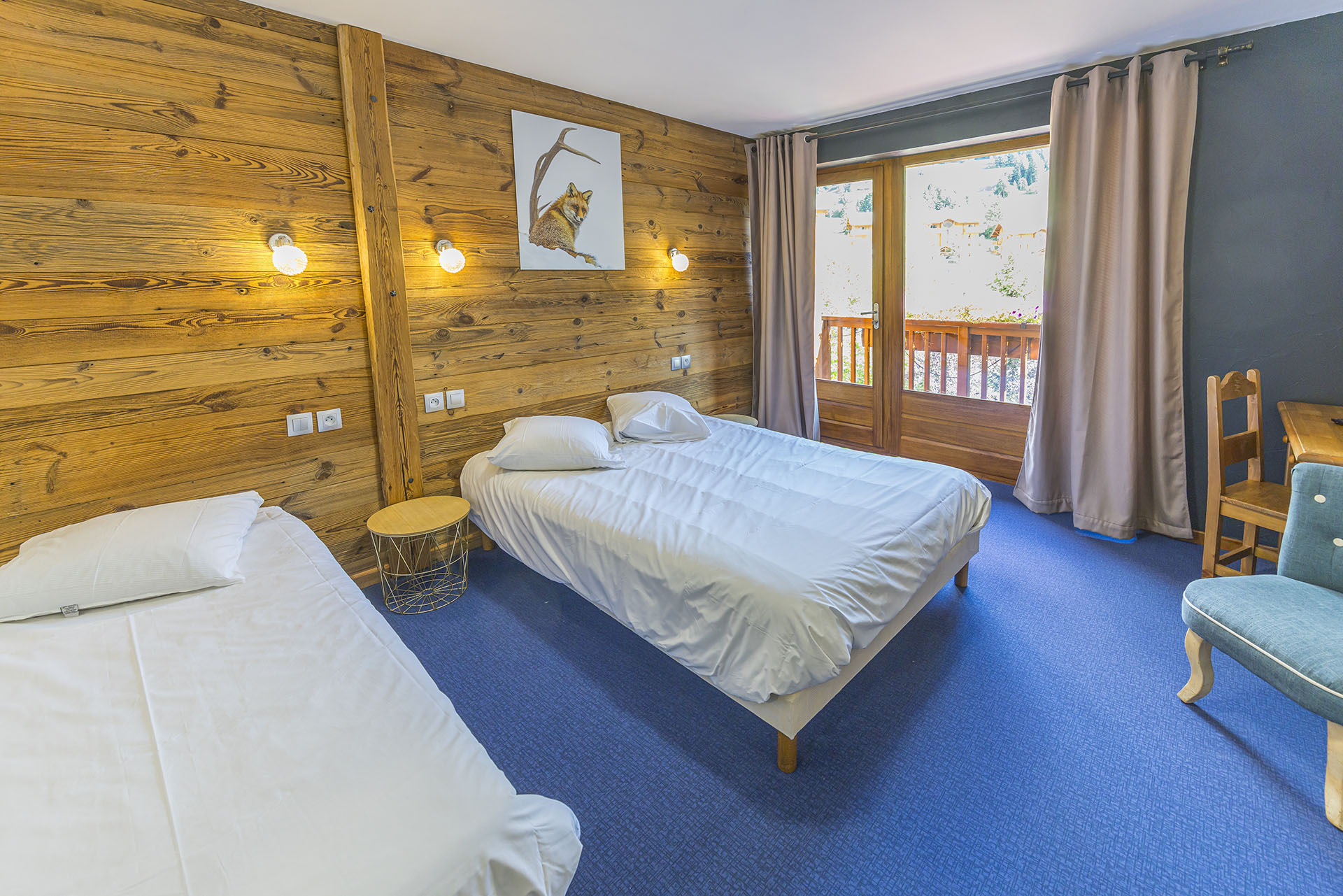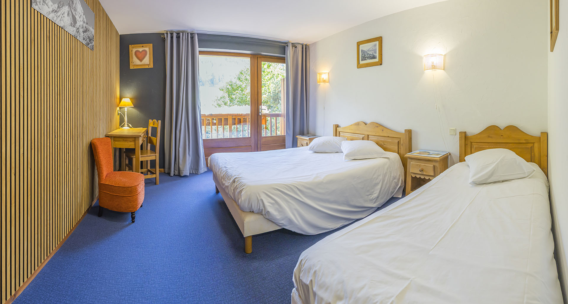 Chambre chaleureuse pour 3 personnes avec très belle vue, comprenant :
